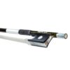 L’archet est fabriqué en fibre de carbone, qui est plus solide et plus durable que le bois et réagit très peu aux changements de température ou d’humidité. Cet archet présente une très bonne combinaison de durabilité, de fiabilité, de poids constant et de bon équilibre. La baguette ronde est de haute qualité et présente l’effet de la fibre 3D embelli dans les tons dorés. L’équilibre, la réponse et le rebond sont excellents et répondent rapidement à toutes les nuances du joueur. Grâce à la robustesse et à la fermeté du manche, le joueur peut jouer avec des coups plus puissants et plus lourds pour obtenir plus de volume. Ce modèle présente un très bon rapport qualité/prix et est idéal pour les joueurs de niveau intermédiaire.